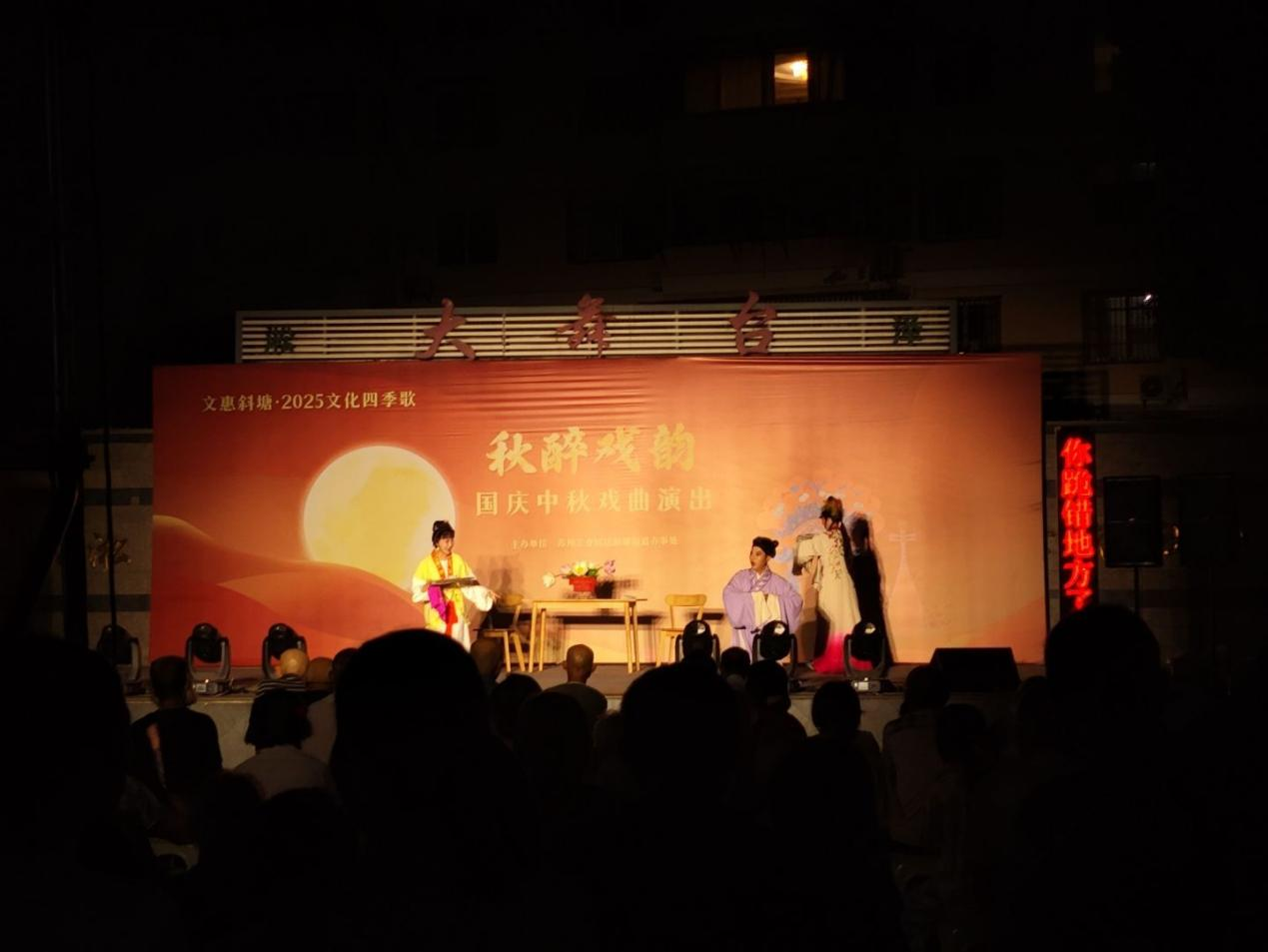 9月27日晚,在淞泽大舞台上由斜塘街道文体站配送的“秋醉戏韵”国庆中秋戏曲演出精彩上演。