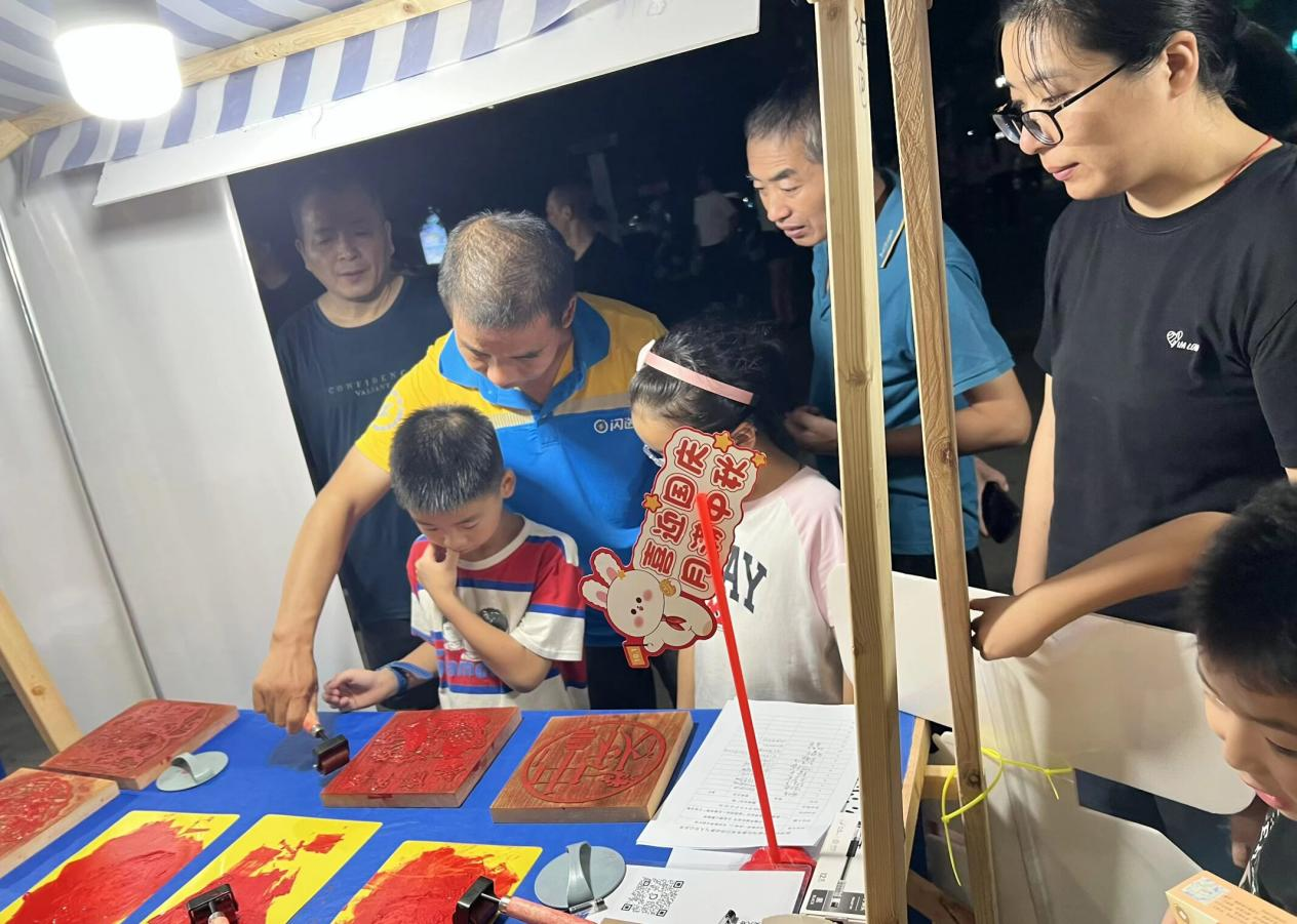 冰糖葫芦晶莹剔透、糖画栩栩如生、棉花糖蓬松香甜、捏泥人巧手生花,传统手艺摊位前排起长队,深受孩子们喜爱。特别设置的“非遗拓印”项目由社区党建共建单位——东吴人寿倾情支持,居民亲手体验拓印技艺,在墨香纸韵中感受传统文化的独特魅力。