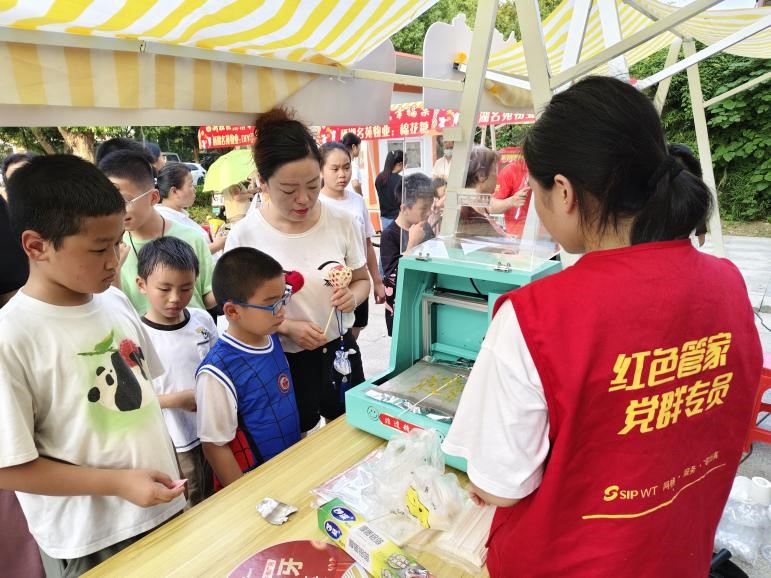 活动现场,7家共建单位精准对接居民需求,提供多元便民服务。苏州地铁葑亭大道区域党支部普及地铁出行安全知识;江苏银行园区科技支行开展金融反诈咨询;江苏移动苏州分公司唯亭分局解答通信疑问;西湖社区警务室宣讲安全常识;牙博士口腔青剑湖机构提供免费口腔检查;中信森林湖幼儿园组织趣味互动;栖湖名苑物业则推出 DIY 灯笼、棉花糖制作及厨电检测等服务,全方位满足居民需求。