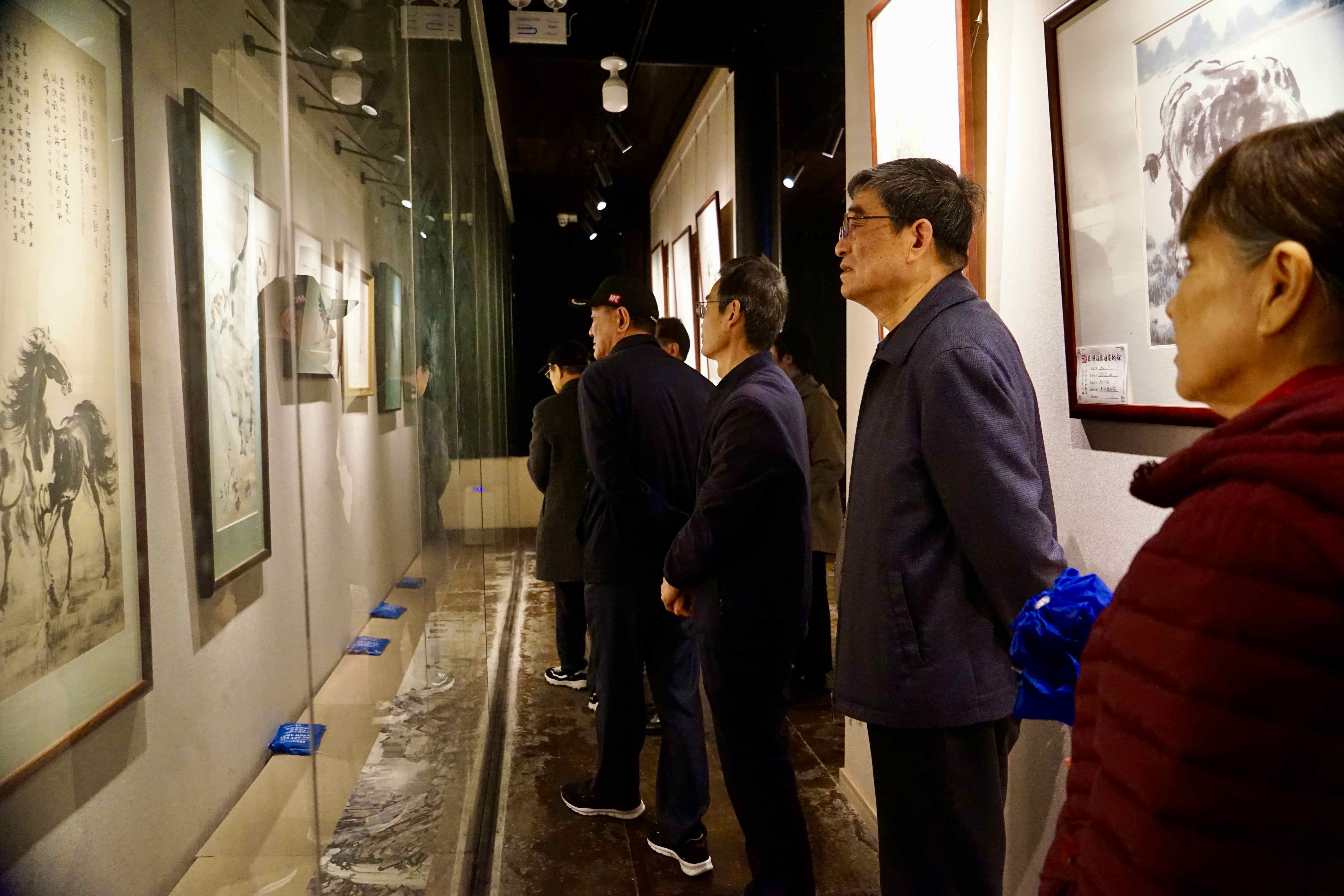 艺术馆第二进是个一百多平方米的临时展厅。开馆以来,这里始终保持高频次的展览节奏,平均每三四十天就举办一场专题展览,至今已经超过60场次。内容涵盖国画、书法、篆刻及漫画、油画等多种艺术形式,既有实力派艺术家的成熟创作,也有书画新锐的创新探索。何铮馆长热情好客,多次邀请我出席书画展览开幕式。凭借徐馆这个平台,我结交了夏维淳、袁牧、胥力浦、杨纯玉、梁树成、梁明康、陶宝华、冯雷等一二十位书画老师与朋友。其中苏州著名肖像画家杨纯玉先生,2022年专门为江南古镇守望者联盟40来位守望者描绘肖像,并在徐馆举办专题展览,当年8月12日《江南时报》整版刊登肖像并作报道,使得江南古镇守望者联盟引发社会广泛关注。还有一秒和石云峰等好友都在徐馆举办过专题画展。一秒本名沈韶辉,绘画每每激情四射,随意挥洒,多出佳构,令人印象深刻。石云峰山水、花卉、走兽、人物多方擅长,特别善画徐悲鸿奔马、郞世宁骏足,还有黄山迎客松,黎雄才和董寿平之后,在我眼里要数石云峰了。石云峰被聘为苏州徐悲鸿艺术馆艺术顾问,我也借光被聘为徐馆的文史顾问。