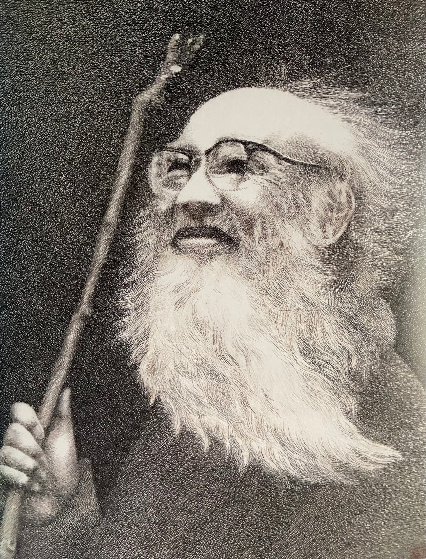 林散之肖像,何铮把绣制过程拍摄下来用图片展示每一个细节,这些图片与肖像一起展示,同行围观,引起轰动,得到业内多位大师的赞誉,《林散之肖像》获得金奖。