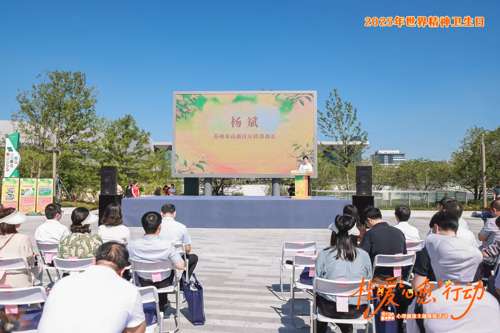 苏州高新区宣传部部长杨斌在致辞中表示,将心理健康融入城市发展体系,是苏州建设“人间新天堂”的重要举措。近年来,苏州高新区持续完善心理健康服务网络,此次“桂暖‘心愈’行动”正是回应市民日益增长的心理健康需求,展现城市人文关怀的生动实践。