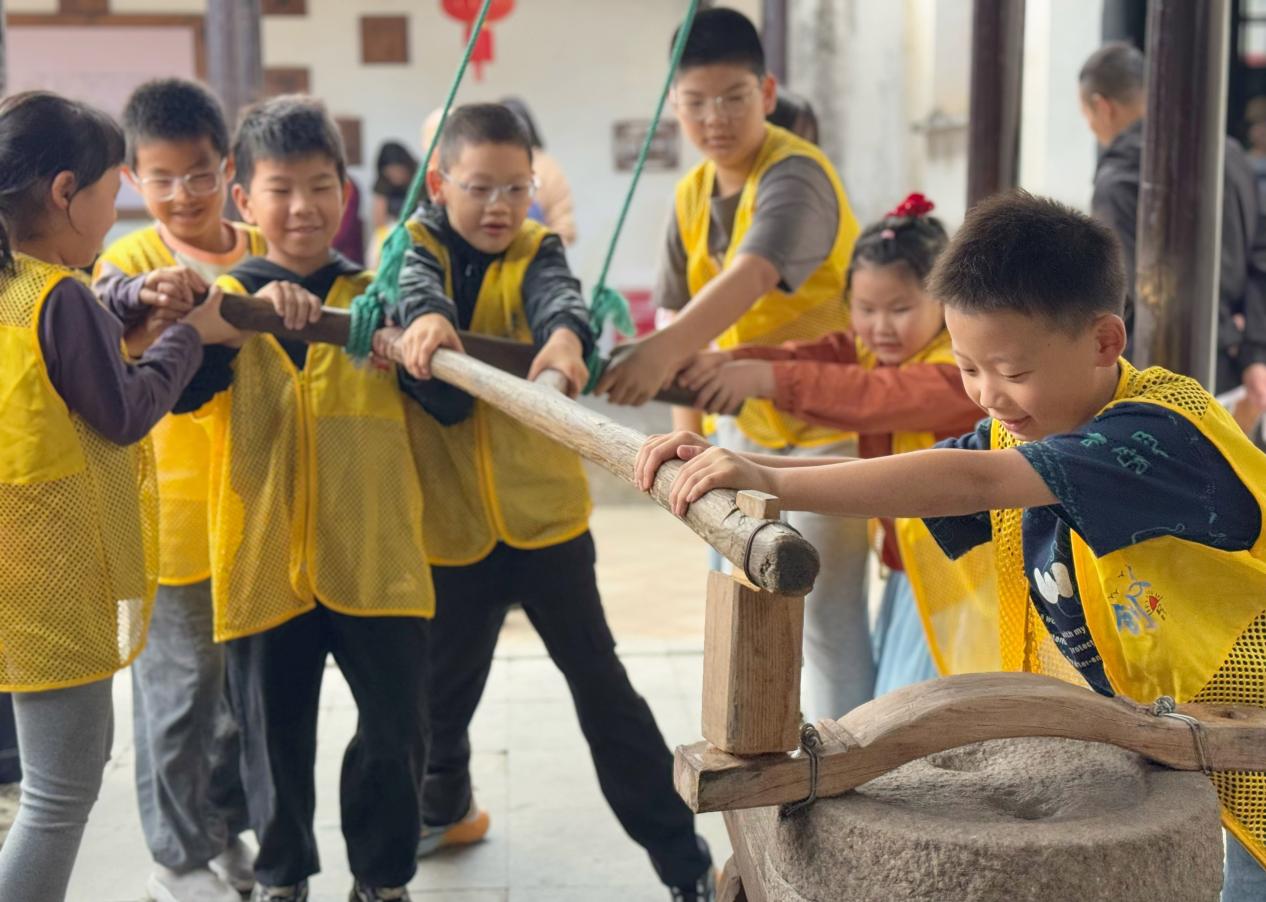 他们的脚步遍及古镇的文化地标,在保圣寺,他们不仅欣赏了唐代塑圣杨惠之留下的千年罗汉塑壁,更亲身体验了甪直独有的水乡民俗——打连厢。在欢快的节奏中,感受传统艺术的魅力。走进万盛米行,孩子们仿佛穿越时空,看到了叶圣陶先生笔下《多收了三五斗》的场景。亲手称量稻米的实践,让他们对“粒粒皆辛苦”有了更直观的理解。在王韬纪念馆,这位近代思想家的报国情怀与开放精神深深感染着大家。孩子们还体验了古老的雕版印刷,在一刷一印间,感受到油墨清香与文明传承的重量。