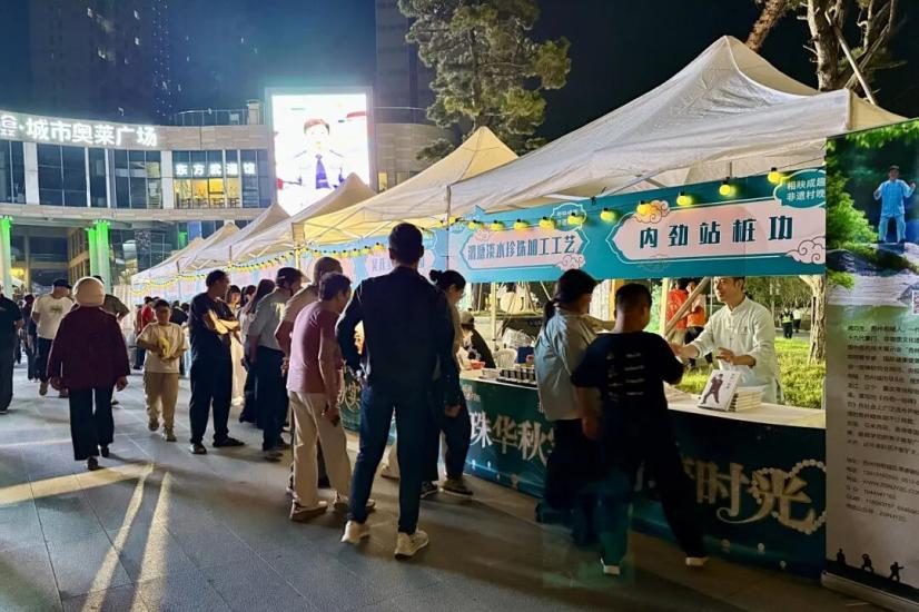 舞台一侧,十余个非遗摊位构成的非遗市集仿佛一条流动的文化长廊,吸引着大家驻足流连。温润的渭塘淡水珍珠在匠人手中焕发新生;古朴的古法铜器沉淀着时光的重量;灵动的草编与精美的剪纸蕴藏着生活的智慧;内劲站桩功、中医骨伤技艺诠释着传统养生哲学;香气四溢的吴氏虾籽酱卤挑动着味蕾;琴弓与提琴制作尽显弦韵的精微之美,无不引人驻足品评。