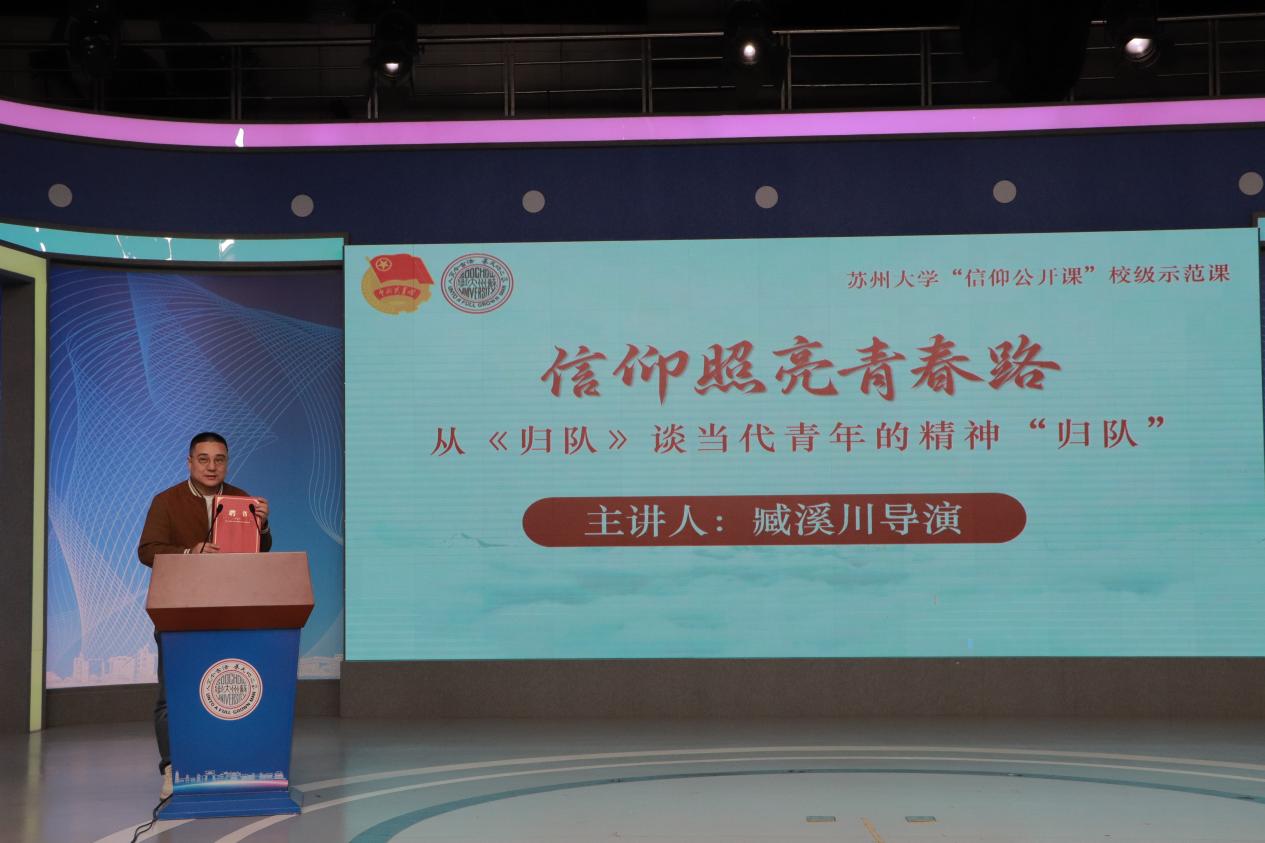 江南时报讯 10月22日,苏州大学举办“信仰照亮青春路:从《归队》谈当代青年的精神‘归队’”“信仰公开课”校级示范课,特邀导演臧溪川作主讲嘉宾,演员郭晓明作分享嘉宾。