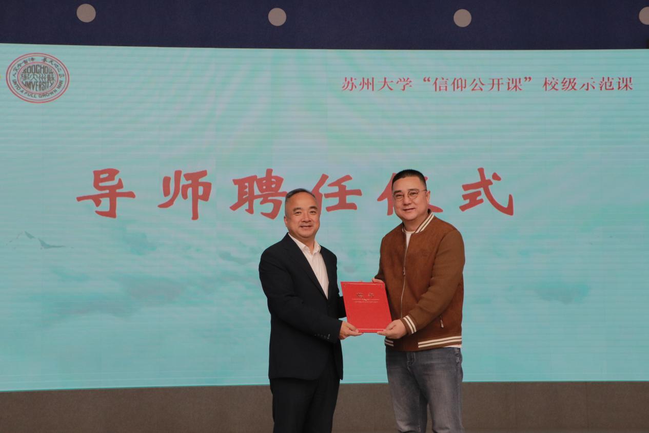 一直以来,苏州大学高度重视推进“大思政课”建设与美育工作深度融合。活动现场,臧溪川受聘为苏州大学“信仰公开课”导师。未来,他将用电影人对艺术的坚守与深耕,把银幕背后的匠心感悟融入思政课堂,以影像叙事诠释使命担当,赋能新时代美育实践。张东润