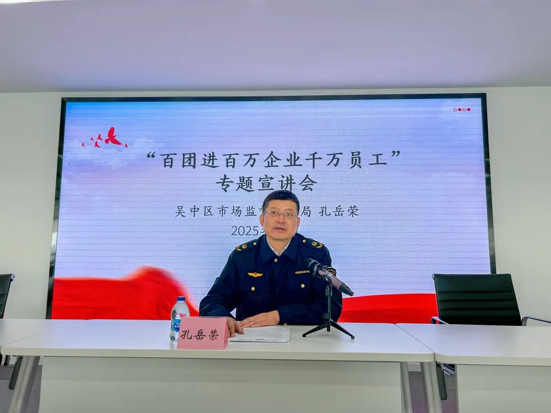 江南时报讯 10月23日,苏州吴中区市场监管局深入企业开展“百团进百万企业千万员工”安全生产专题宣讲活动。吴中区郭巷街道35家特种设备使用单位企业主要负责人或安全管理负责人参加宣讲活动。