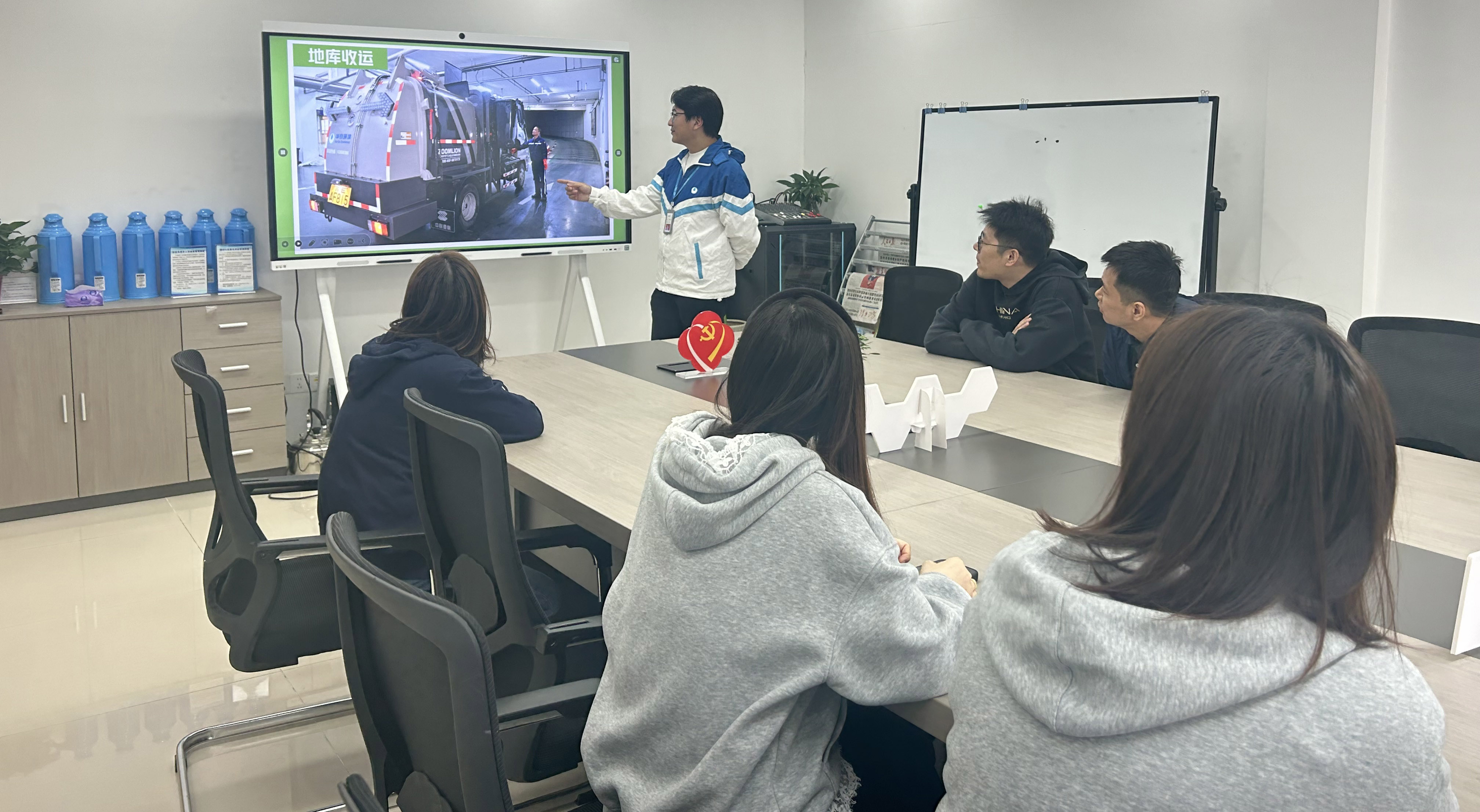 活动现场,华衍环境志愿老师以专业且亲和的姿态站定讲台。大屏幕上,“垃圾分类,从我做起”的标语搭配活泼卡通图案,率先点明活动主题;随后切换的“地库收运”实景画面——垃圾车有序作业、工作人员规范操作的场景,瞬间将在场人员带入垃圾处理的实际场景。