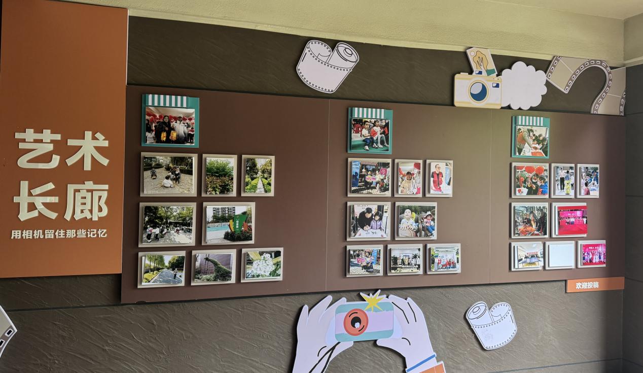 一方面,依托社区“乐龄先锋”志愿队中书画摄影爱好者的力量,将闲置空间打造为集展示与交流功能于一体的文化园地,既美化了环境,也为居民提供了互动分享的平台。另一方面,社区积极对接外部优质资源,引入“明·美术馆”的“艺术进社区”项目,在北极星花园2幢架空层精心打造艺术主题楼道。