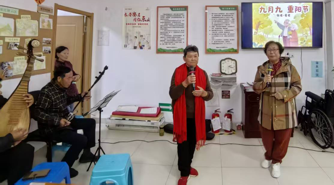 随后,莲香文艺队志愿者闪亮登场,为老人带来精彩演出。锡剧的婉转、沪剧的柔情、黄梅戏的清新、歌曲的深情,各种表演轮番上演,令人目不暇接。精彩的节目吸引了众多居民前来观看,鼓掌声、音乐声、欢笑声交织成一曲欢乐的乐章。现场老人也被这热烈氛围感染,纷纷主动上台展示才艺。