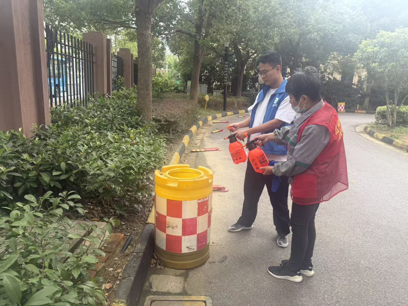 同时,为从源头减少蚊虫孳生,社区还组织党员志愿者对小区内易积水处进行重点清理,并对灌木丛等绿化喷洒驱虫药进行蚊虫消杀,以降低居民被蚊虫叮咬的概率,提升居民居住舒适度。