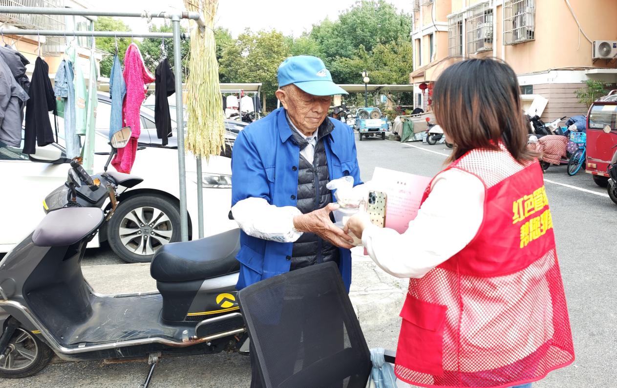 除现场制作的馄饨,社区还专门准备了象征吉祥如意的重阳糕。工作人员和志愿者将热乎乎的馄饨细心分装,与重阳糕一同打包成“暖心礼包”。随后,大家分组行动,穿梭于社区楼宇之间,上门为社区内80岁以上高龄老人及“五老”人员派送节日礼物。