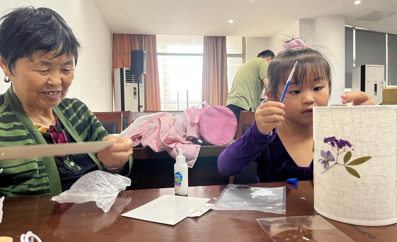活动中,发现一位奶奶手指不便后,立即上前协助扶稳模板,默契配合中传递着敬老心意。制作完成后,孩子自豪展示成果,老人用手机记录温馨瞬间,现场洋溢着欢声笑语。
