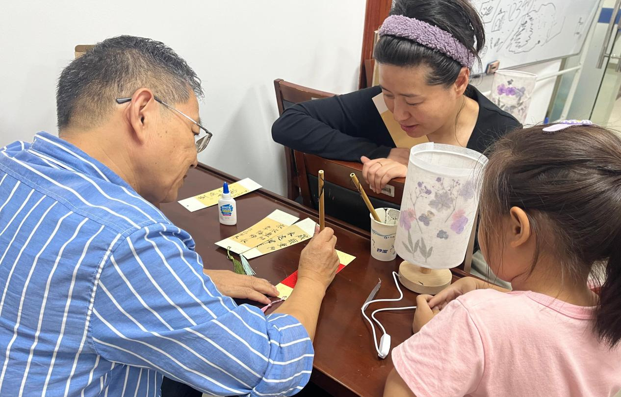 “书法书签・家庭纪念”活动进一步促进了文化传承与情感融合。社区书法爱好者主动承担教学任务,耐心指导青少年执笔运墨,“手指要放松,笔杆保持垂直”“‘福’字右半部要饱满有力”……一句句悉心点拨让孩子笔下的字迹渐显章法,孩子也主动备墨理纸,有的发现老人袖口沾墨,也及时递上纸巾。一个个独具匠心的书签,成为家庭纪念与邻里情谊的载体,有效推动了社区融合。