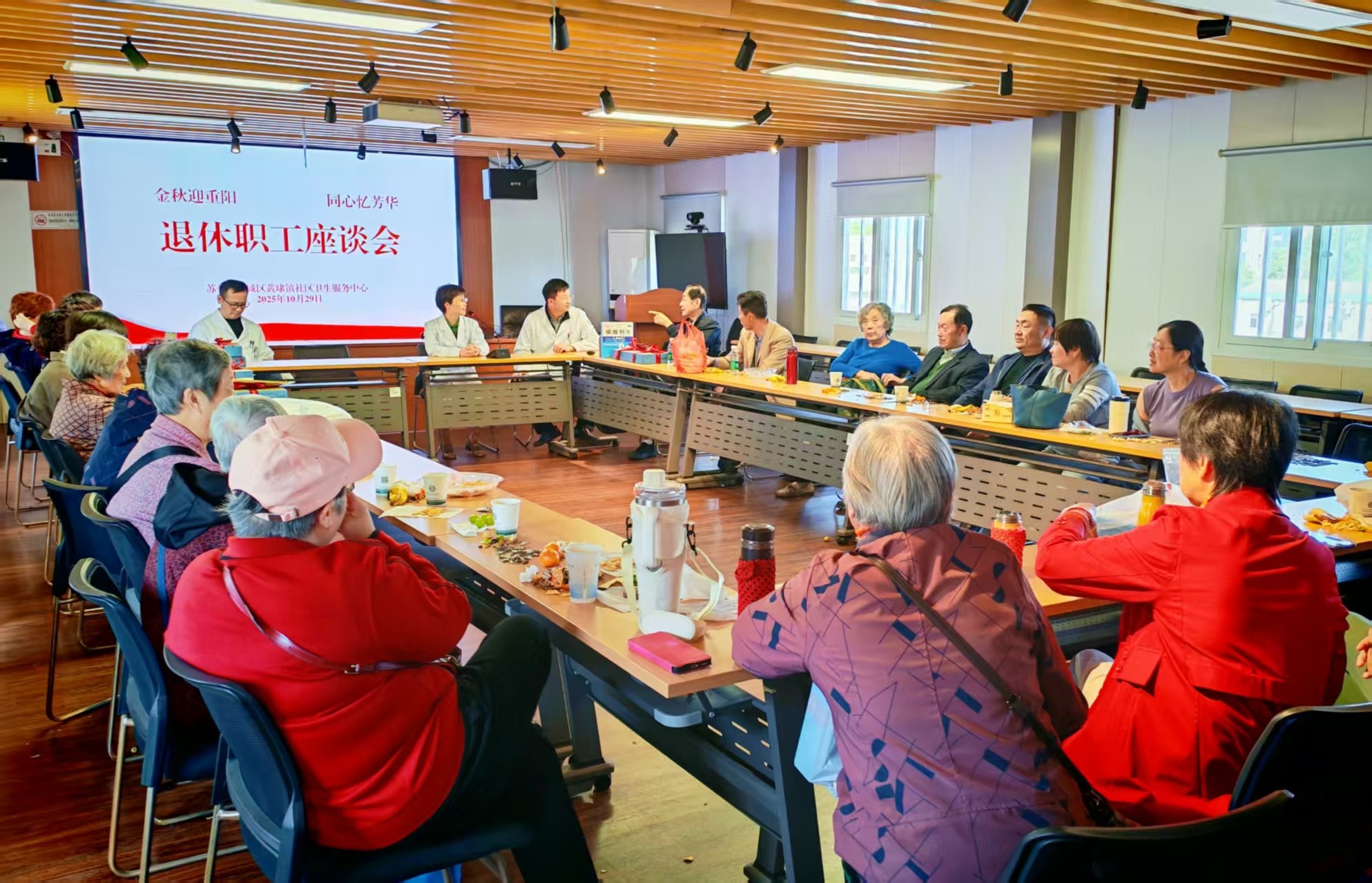 江南时报讯 金秋送爽,今又重阳。10月29日上午,苏州市相城区黄埭镇社区卫生服务中心组织开展了“金秋迎重阳,同心忆芳华”退休职工座谈交流会,邀请老同志们重返单位,共庆佳节、共话发展。