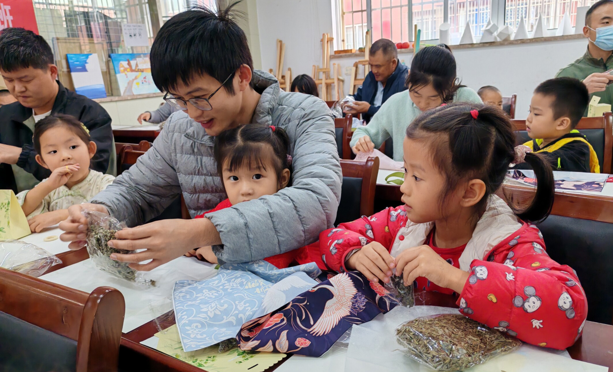 如果说重阳糕唤醒的是味觉记忆,那么接下来的茱萸香囊制作,则是一场指尖上的文化传承。大家在一针一线中缝制出一个个寓意健康平安的香囊,淡淡药香萦绕间,传统文化以可触可感的方式浸润人心。