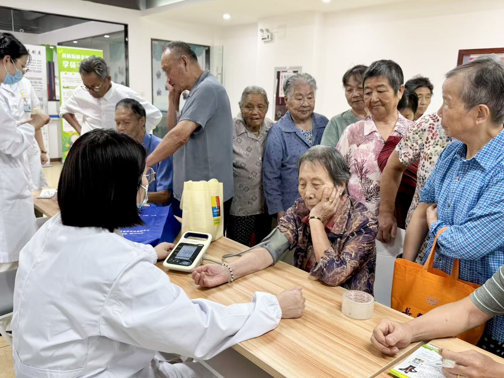 医务人员们分工协作,为现场居民提供免费血压血糖测量、体格检查、专科问诊、用药指导等服务。针对不同病症和个体差异,提出合理的诊疗建议和治疗方案,帮助大家及时了解自身健康状况,掌握健康生活方式,用健康、科学的方式向老年人表达节日祝福。