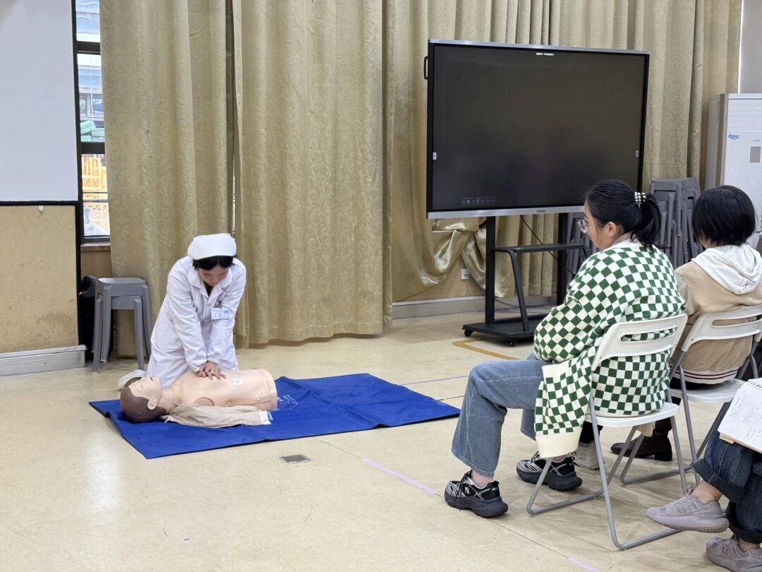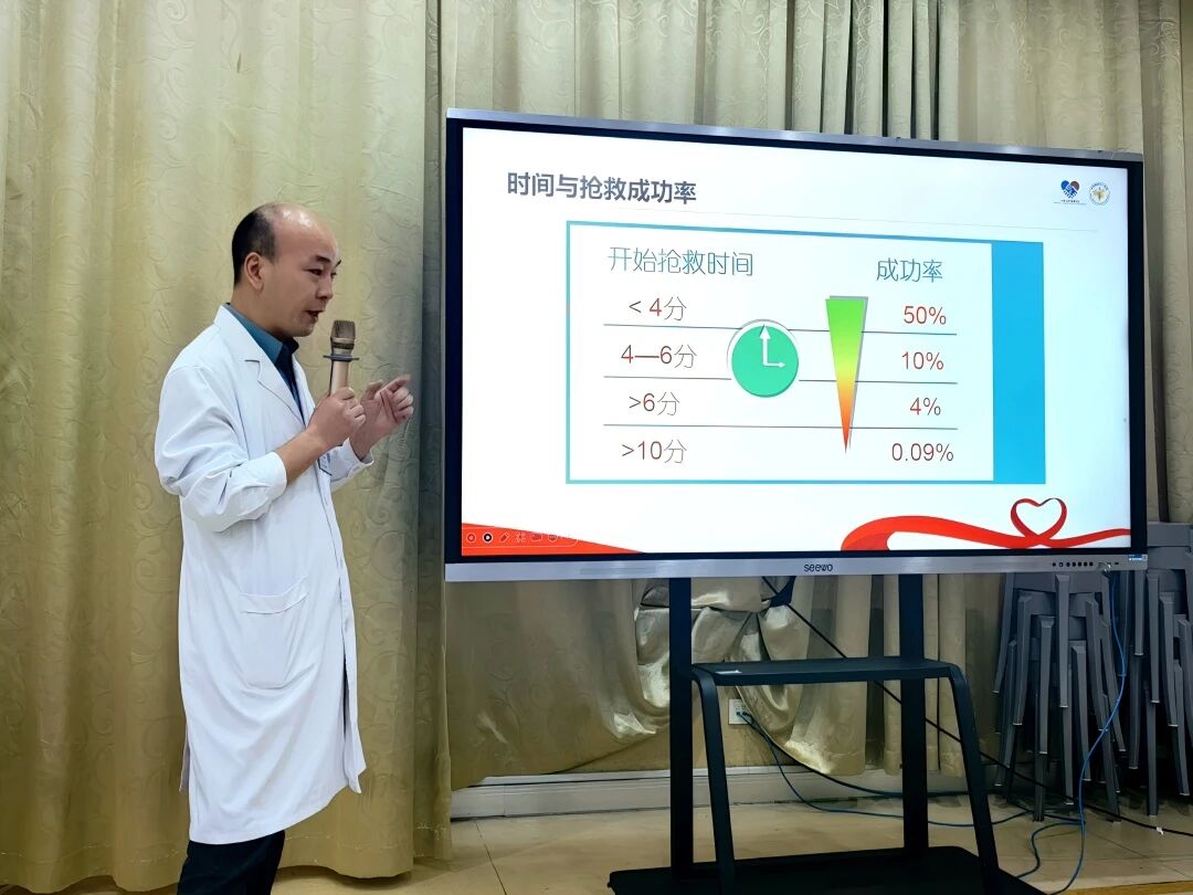 首先,由中心内科的夏成涛医生围绕心肺复苏(CPR)和胸痛急救展开讲解。他用浅显易懂的语言阐述了适用场景、操作原理及核心要点。夏医生详细分解了意识判断、呼吸评估、正确呼救、胸外按压(包括位置、深度、频率)以及人工呼吸的标准化操作流程。此外,他还科普了胸痛的常见诱因和初步判别方法,并特别提醒老师们,在遇到孩子突发不适时,务必保持冷静,妥善处理,并及时联系专业医疗救助。