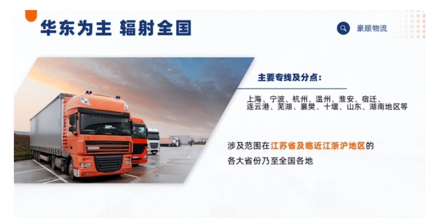 如今,豪顺物流已构建起强大的硬件与网络体系:拥有长短途及市内配送车辆百余辆,涵盖 4.2 至 20 米全封闭箱车、半封闭箱车、平板车等多种车型;配套超 2 万平方仓储空间,可满足客户多样化仓储需求;同时开辟江浙沪等发达地区专线及保税仓服务,布局中东、中亚、非洲等海外专线与海外仓,真正实现 “跨区域、多品类、全通路” 的物流服务覆盖。