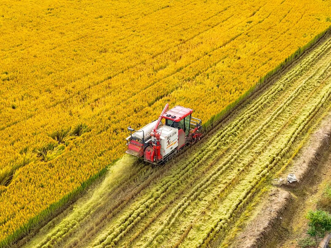 “轰隆隆”田埂边传来阵阵轰鸣,收割机穿梭在稻浪中,“吞”下稻秆、“吐”出谷粒一气呵成。不一会儿,载稻谷的货车便满满当当。这些稻谷将经过烘干、谷糙分离、碾米等步骤变成新米,出现在大家的餐桌上。煮一碗新米饭,米香能飘满整个厨房。