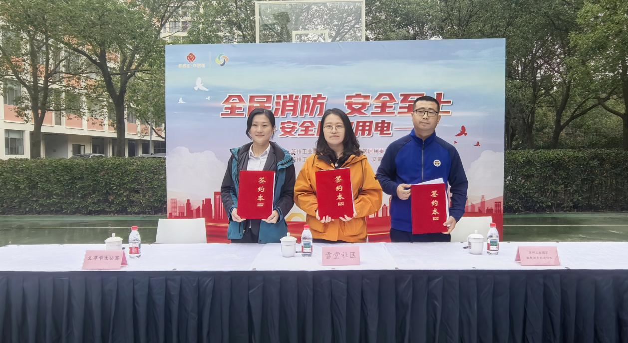 为推动社区消防安全工作向规范化、专业化与常态化迈进,雪堂社区携手文萃学生公寓、独墅湖专职消防队举行共建签约仪式。