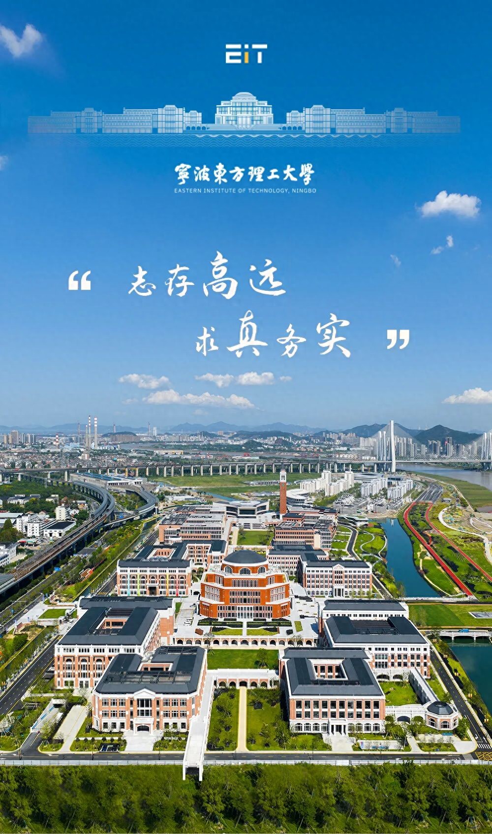 宁波东方理工大学的校园设计,以 “百年经典”为目标,以 “枕水长卷”为特色,不同层次的建筑空间,沿着江边绵延展开,描绘出绵延3.5公里的滨江画卷,营造出一座理性浪漫、多元灵动、开放共享的创新、智慧低碳的绿色校园。