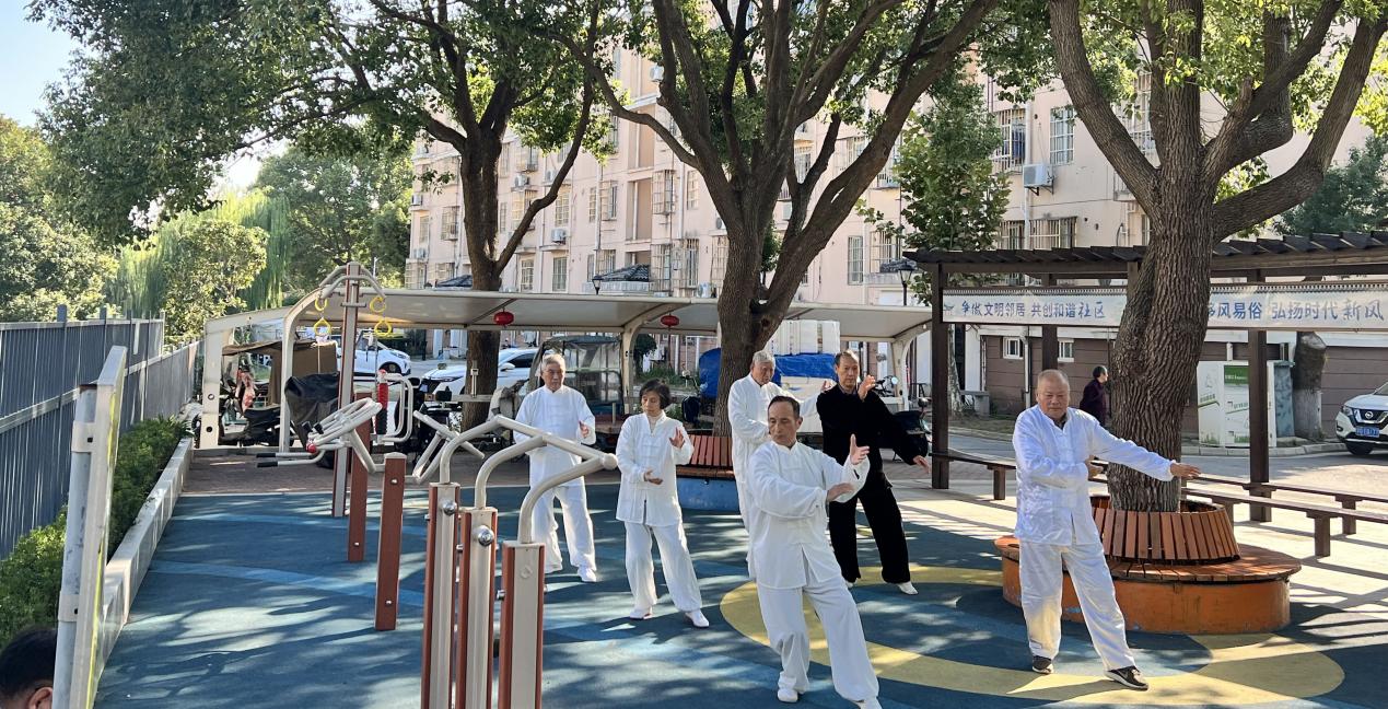最近,淞泽社区里新打造的连心健身角,成了老人晨练的乐园。微风中,几位老人身着素雅练功服,正缓缓打着太极。动作行云流水,刚柔并济,一招一式间,尽显岁月沉淀的从容。
