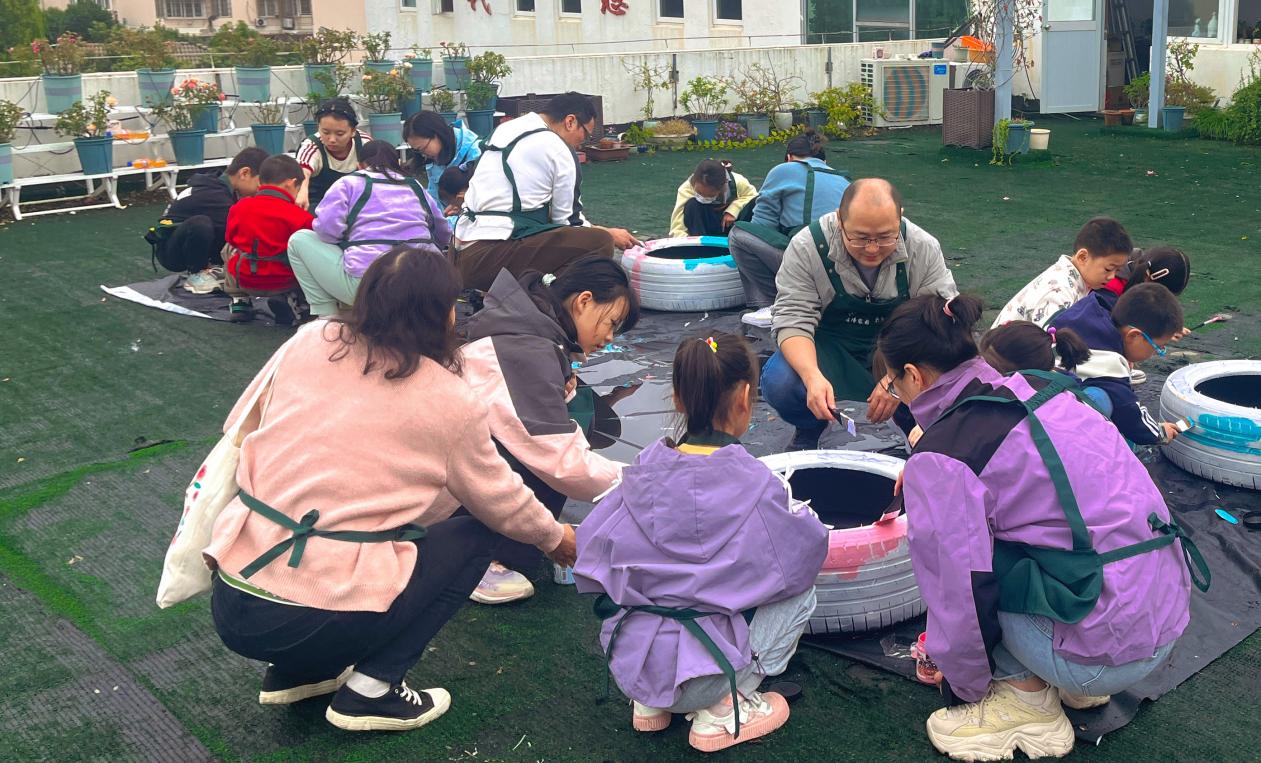 11月9日,在淞泽社区党委的精心策划与带动下,“共享花圃轮胎彩绘”主题活动在社区三楼露台的家年华妇女微家阵地上火热开展。