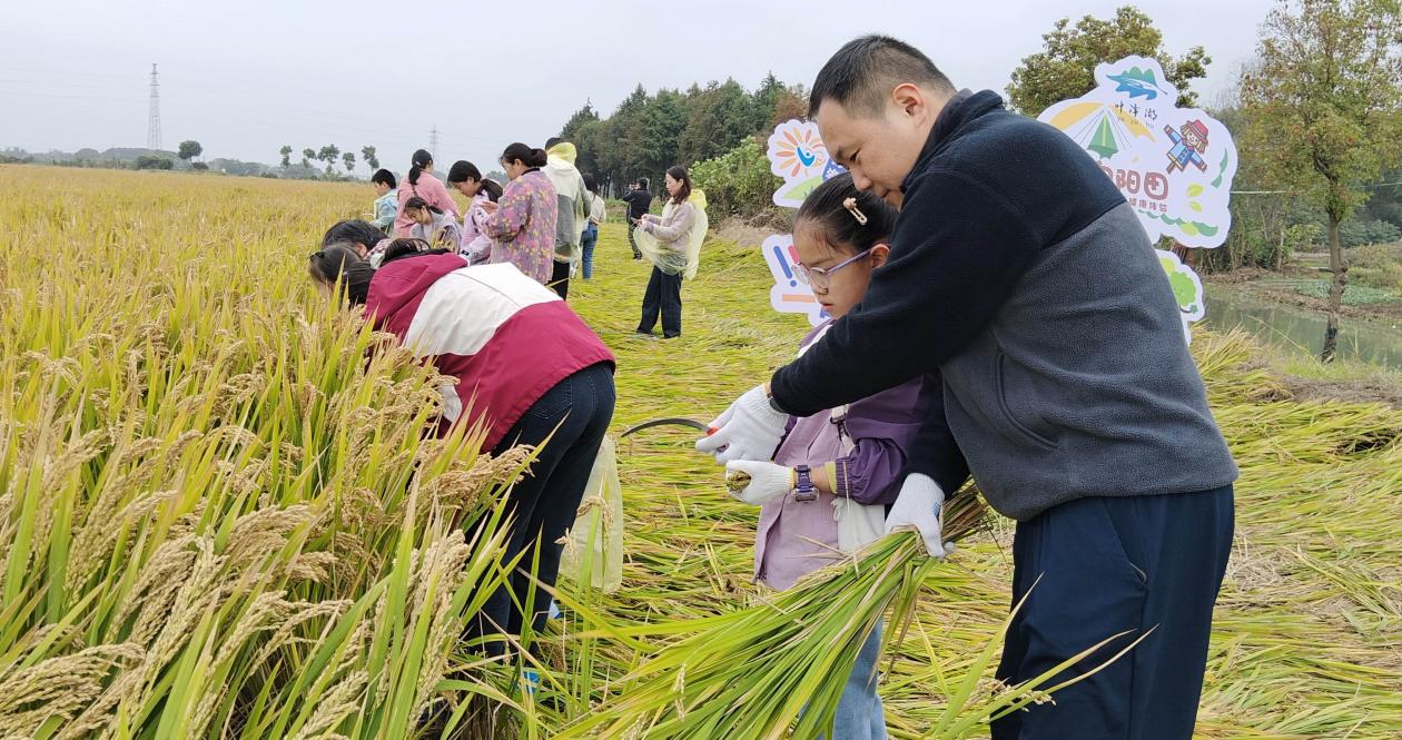 活动既有走进吴江千亩柑桔基地,新市民家庭亲子合作采橘、品橘,又有在太湖之滨的基地上“两人三足”、“趣味投壶”、“共建圆融”等团建游戏中拉近距离。还有在周边农田里,学习水稻生长周期与土地轮作知识,演示割稻技巧,并亲身手持镰刀体验丰收劳作,在泥土与汗水中读懂“粒粒皆辛苦”的深意。