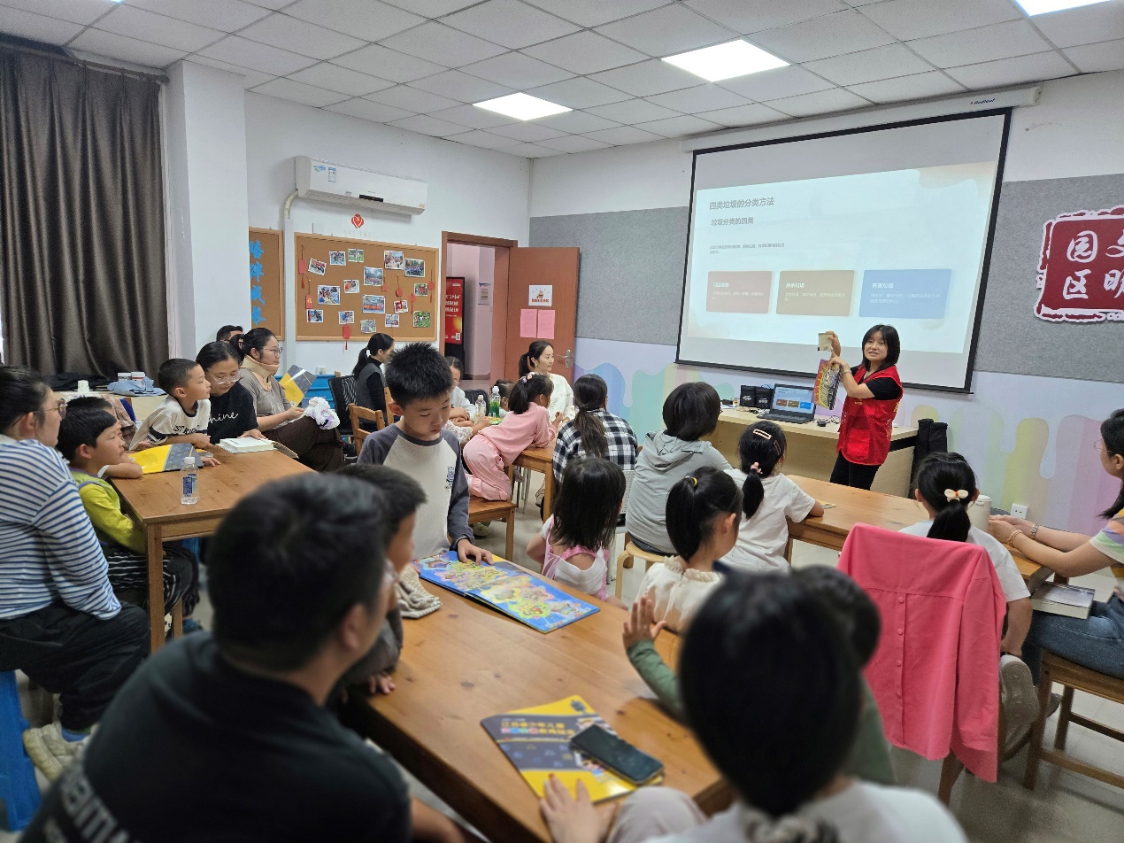 “如果家里有垃圾,我们应该怎么做呀?”在社区“环保绘本讲堂”现场,绘本老师正结合《垃圾车来了》的故事与孩子们互动,小朋友们纷纷举起小手,踊跃分享自己的想法。老师用童趣语言拆解环保知识,将抽象的生态理念转化为可感知的生活场景,让环保教育从社区延伸至家庭,形成家校社协同的绿色教育链条。“听完课孩子马上提醒我要做好垃圾分类,还说要当家里的‘环保监督员’。”居民王女士欣慰道。