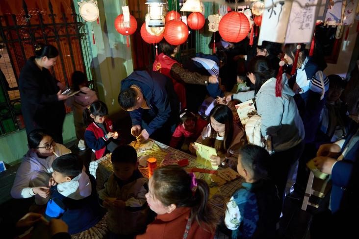 本次暖集以党建为核心纽带,在至和园打造了一幅全景式民俗长卷,让参与者在互动中触摸传统文化温度。“和悦剥谷”体验区里,孩子们亲手触摸稻谷、体验脱壳劳作;跳皮筋、投壶、跳格子等民间游戏区前人头攒动,家长和孩子在欢声笑语中体验传统游戏的魅力;手工制作区内,灯笼扎制、手链编织、蜡染书签等特色项目排起长队,大家一针一线、一染一晒间,沉浸式感受传统手艺的匠心与温度。此外,老物件展示区陈列的物品,更让不少孩子和家长驻足沉思,深刻体会“旧物藏光阴,民俗传文脉”的深厚内涵。