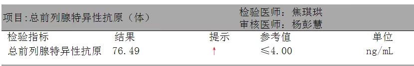 体检结束后,中心在整理审核报告时发现邢先生的前列腺特异性抗原(PSA)指标存在异常升高,数值高达76.49ng/mL,远超≤4ng/mL的参考值。这一异常结果引起了体检中心主任陆萍的高度警觉,她第一时间通过电话联系上了邢先生及其家属,详细解释了检查结果并建议他们尽快前往上级医院进行进一步诊查。