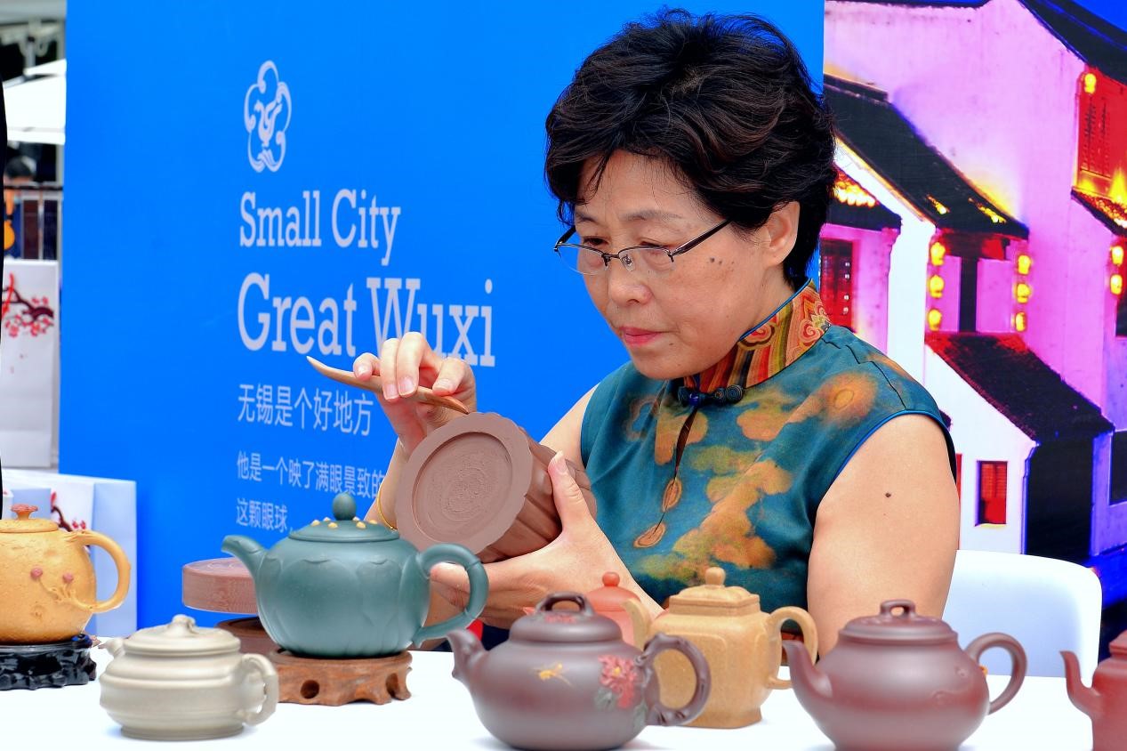 宜兴紫砂代表性传承人、正高级工艺美术师吴芳娣和惠山泥人代表性传承人、研究员级高级工艺美术师赵建高现场的非遗制作,更是夺人眼球,游客纷纷驻足观看点赞。