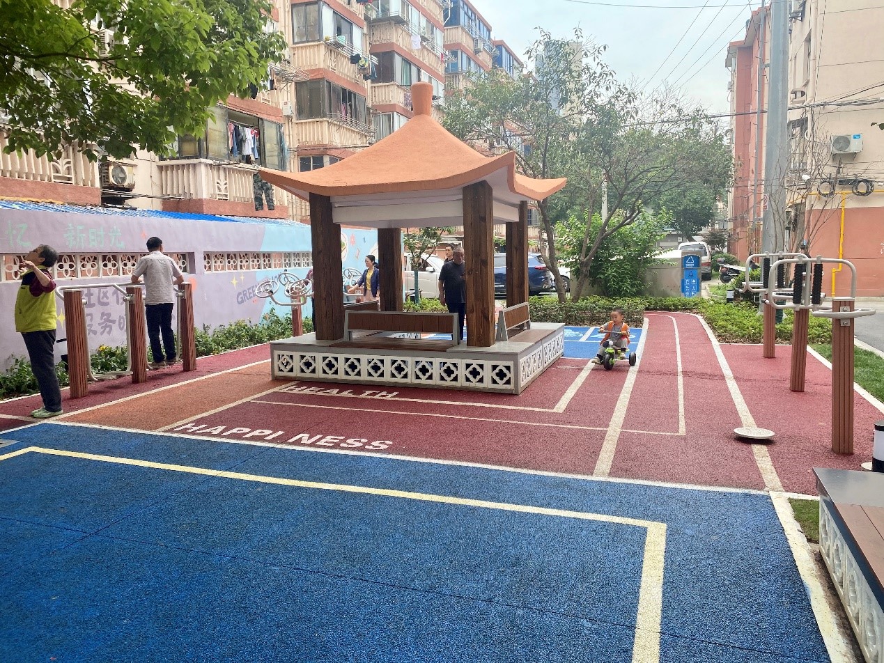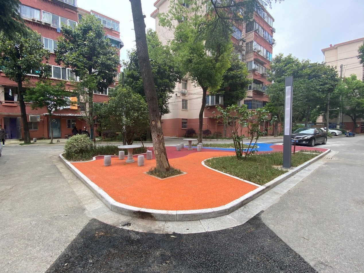 走进塘南新村小区入口,这里入口处已经设置了智能门禁和外卖存放点、信箱等便民设施;小区沿路都用彩色沥青铺设了人行步道,并合理规划了机动车与非机动车停车位,努力实现人车分流;结合围墙布置文化休憩廊架,创造邻里聊天聚会空间;在拆除违建的区域设置健身休闲设施,形成社区小广场,以满足居民日常户外活动需求......整个改造区域分为社区记忆新空间、入口特色新空间、邻里生活空间、活力游园空间、阅读艺术交流空间、便民新空间、党建文化广场空间、口袋公园空间八个区域,不同功能区之间的绿化景观衔接,微中见精,在增添生态绿意的同时提升小空间的精致感。