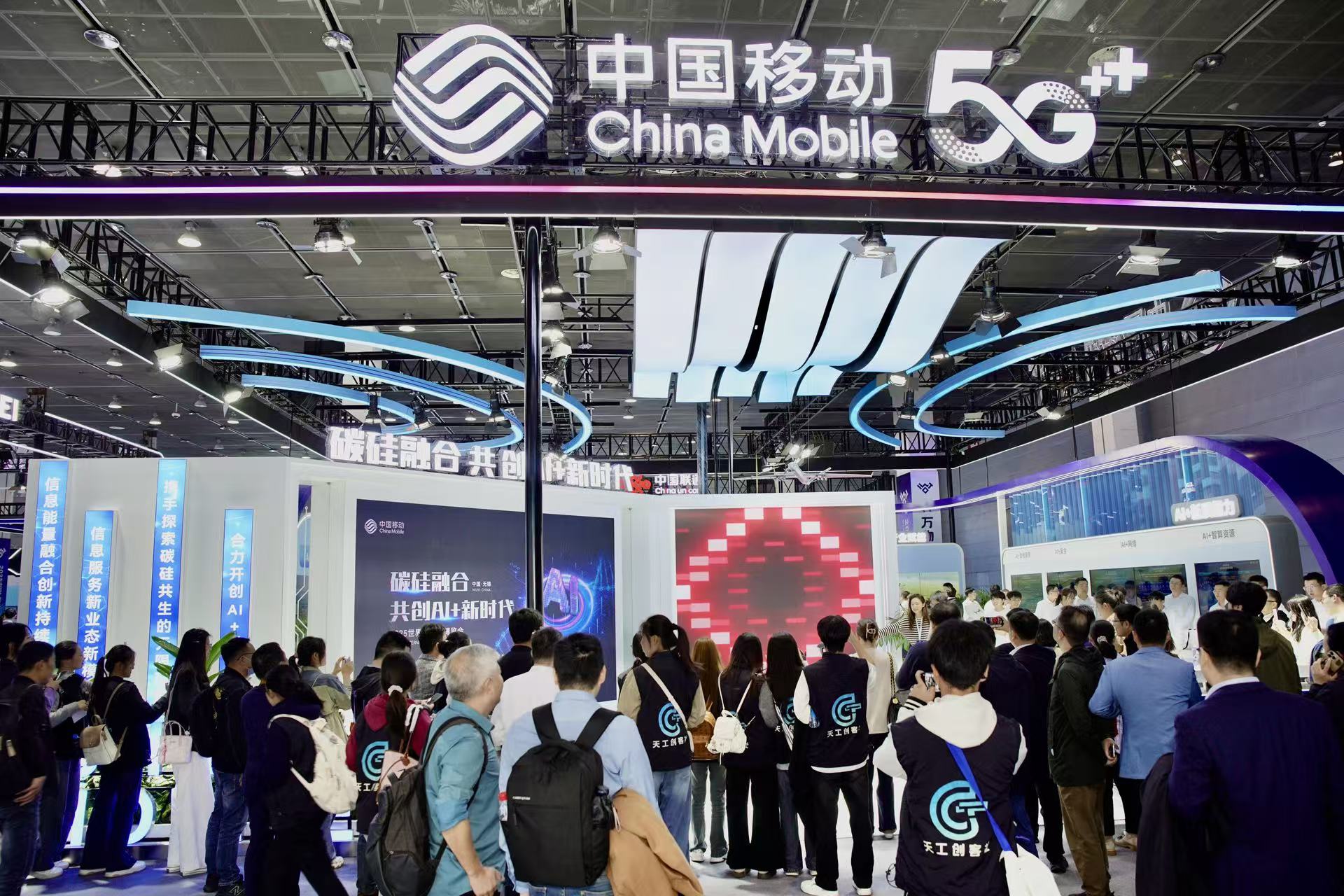 在此次盛会中,中国移动以“碳硅融合,共创AI+新时代”为参展核心,以中国移动“AI+”升级行动计划为导向,携低空经济、AI+大模型、智算、具身智能、6G等端到端解决方案重磅亮相,以“能力具象化、协同场景化、价值可量化”的参展逻辑,将人工智能与物联网的融合之力融入沉浸式体验,让观众零距离体悟万物智联的无限可能,为无锡打造“以物联网为核心的数字产业体系”注入强劲动能。