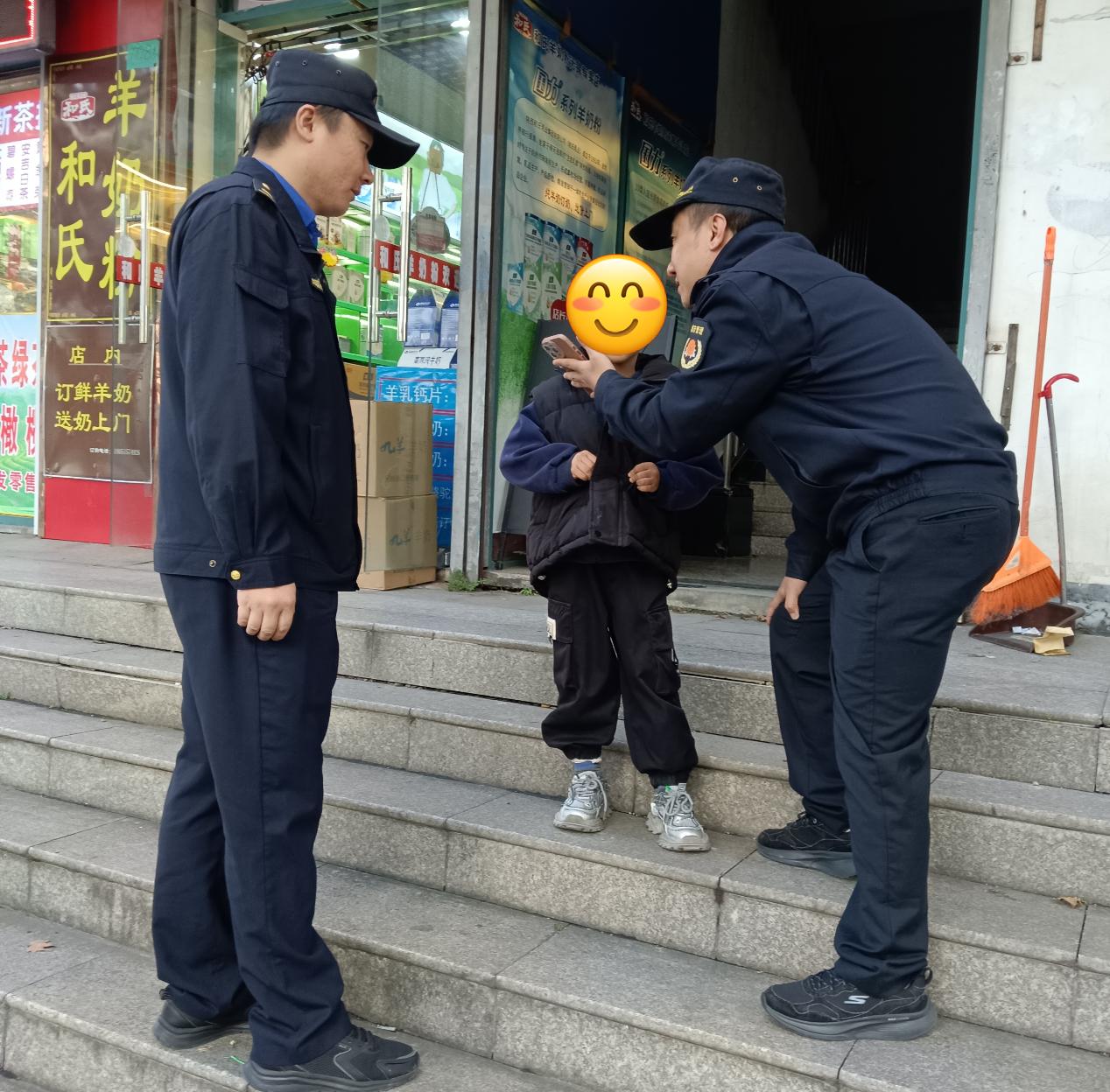11月11日下午四点左右,无锡梁溪城管景区中队队员们在槐古路执勤时帮助一名走失儿童安全回到家人身边。