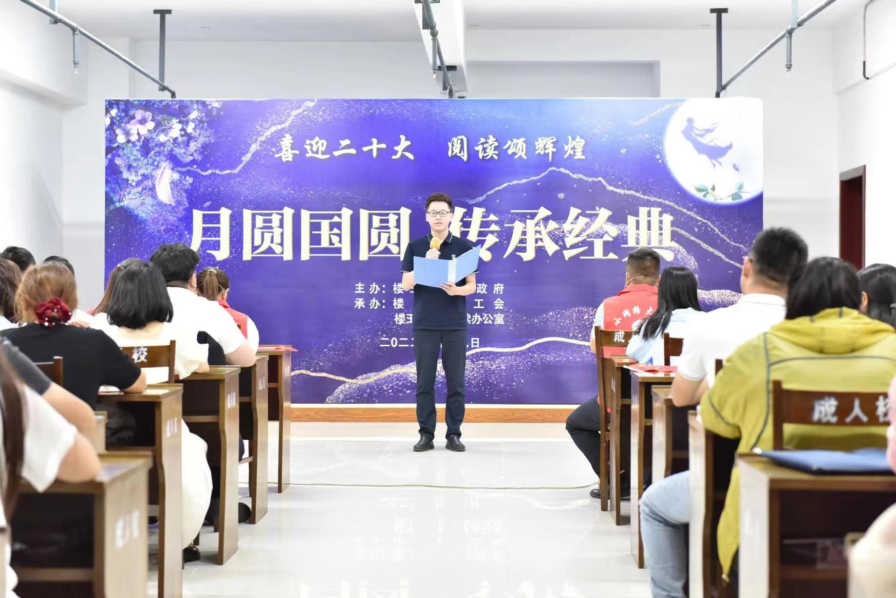 “露从今夜白,月是故乡明”,大家轮番上台,深情朗诵自己喜爱的中秋诗词。灌南的小伙子王晨珲今年刚来楼王工作,远离家乡的他用这首诗表达了自己对父母和亲人的思念之情。他表示,虽然没能回家过节,但有这么多朋友和同事陪伴,并不孤单却很温暖。各单位还现场进行了诗朗诵,镇全民阅读办的《中国梦劳动美》、镇综治办的《我是谁》、楼王幼儿园的《中国话》、利民社区的《一卷大唐的风华》,以及今年新入职的机关干部朗读的经典文学作品片段,在现场将经典传播,将文化传承。