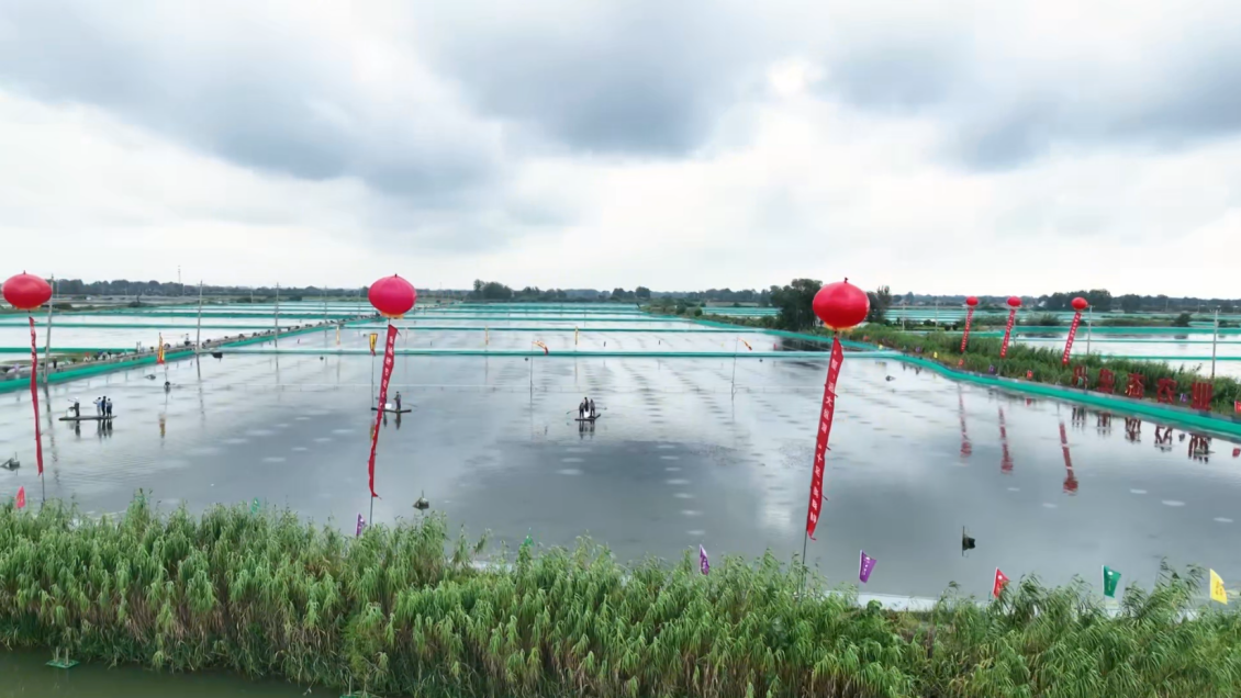 (日前,在盐城市盐都现代渔业产业园内,5000亩大闸蟹正式开捕。张孜越 摄)