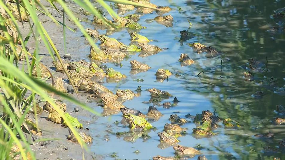 (江苏田盛源生态农场的农田里,黑斑蛙肥硕健壮、灵动穿梭。杨斐 摄)