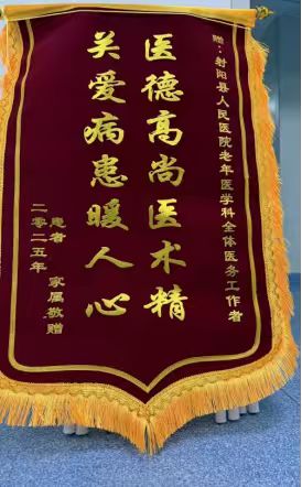 江南时报讯 近日,一面镌刻“医德高尚医术精,关爱病患暖人心”的锦旗,被 92 岁高龄老人的家属郑重送到射阳县人民医院老年医学科。这面红彤彤的锦旗,不仅承载着家属对医护人员的满心感激,更映照出科室团队用专业与温情守护老年患者健康的初心。