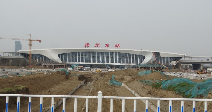 连淮扬镇铁路通车在即,未来连淮扬镇铁路扬州站将成为扬州新的对外门户。昨天,记者在连淮扬镇铁路扬州站采访时看到,位于扬州东站前的韩万河公园河道建设工程正在稳步推进中,河道开挖基本成型,桥梁建成摊铺沥青,景观打造即将展开。