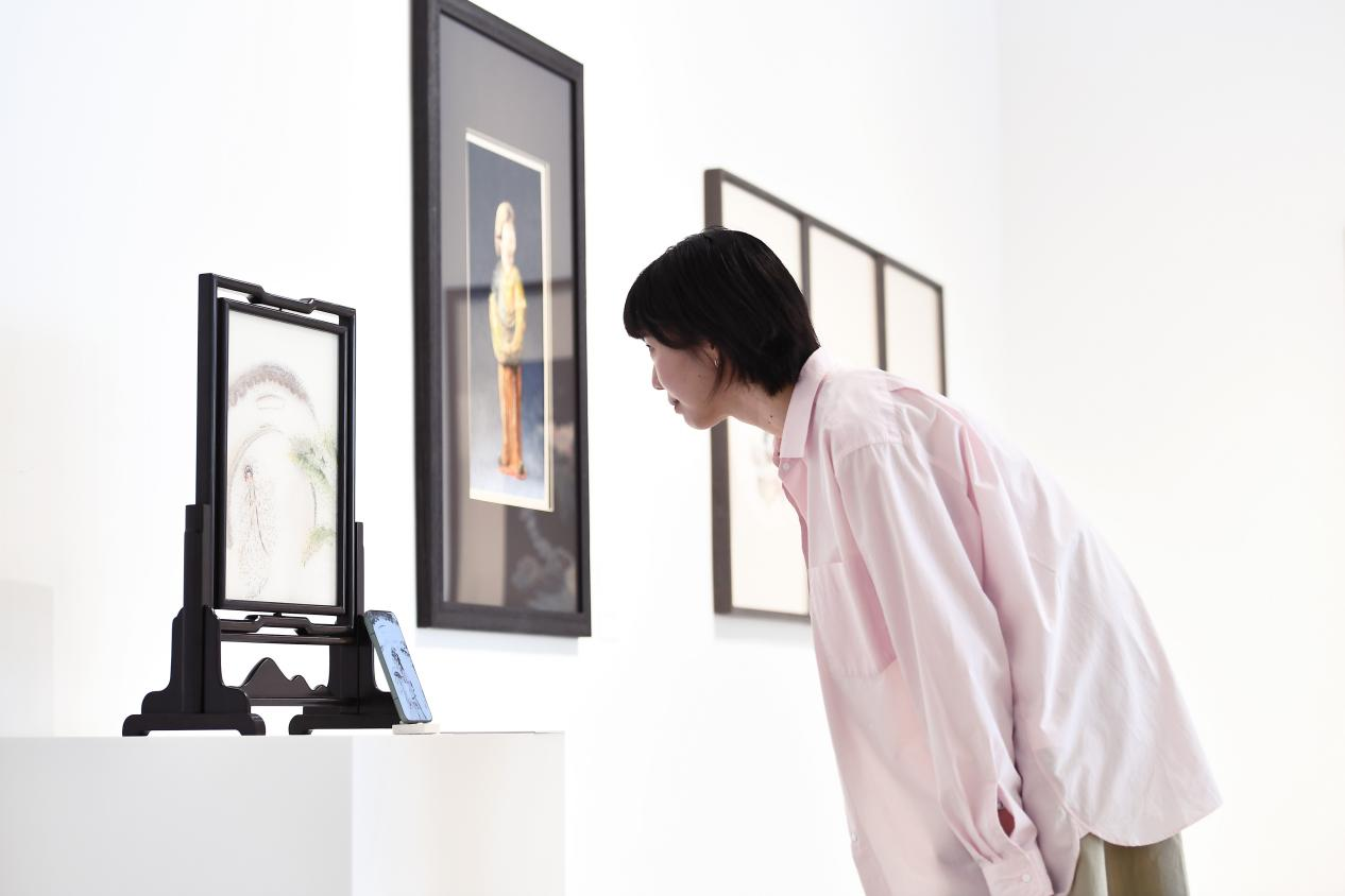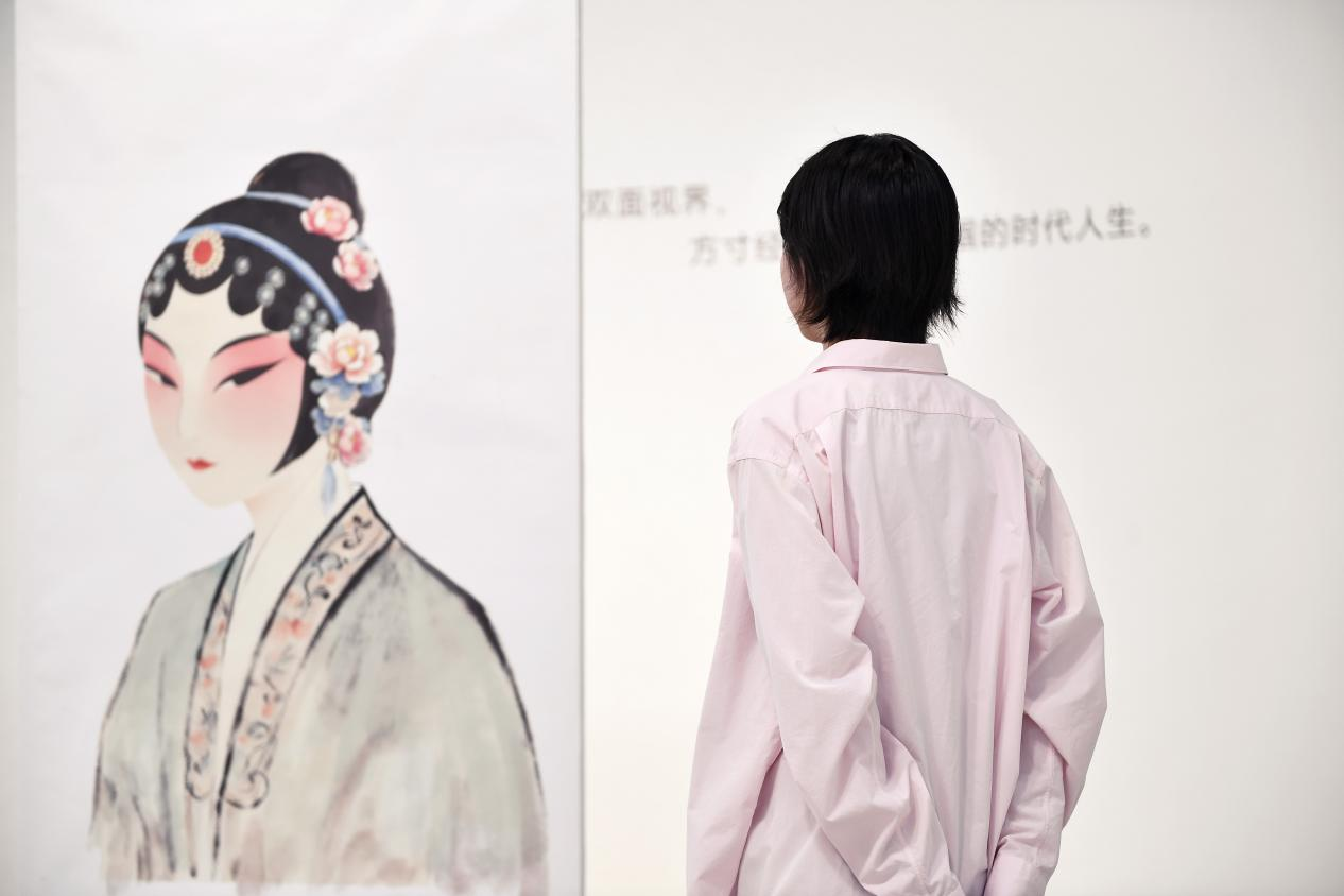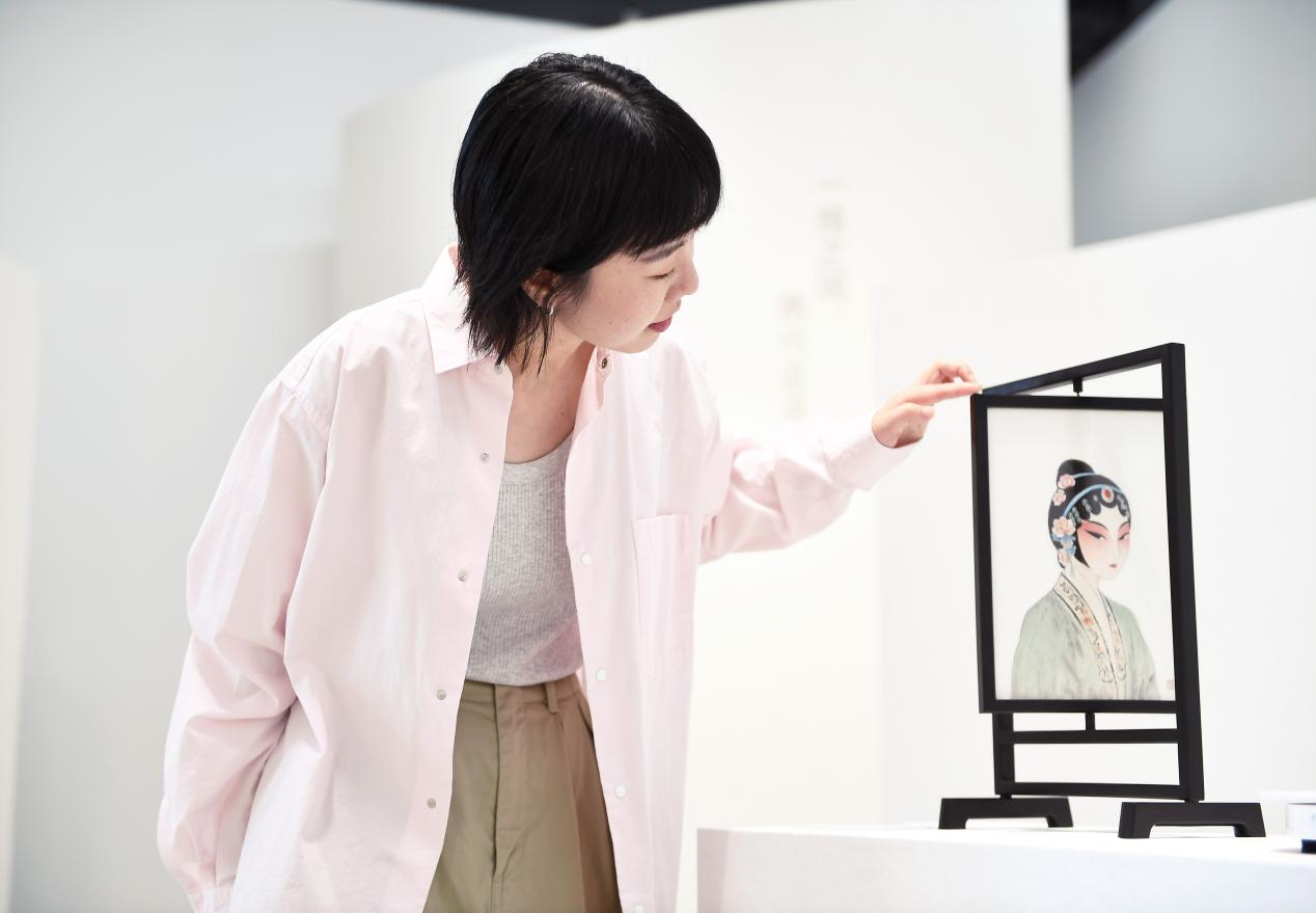 青年苏绣传承人岳琰便用一幅《新扉》给予了观展人不小的震撼。她用“古典面”和“今世面”展现了昆曲在数字土壤中的重构,岳琰表示:“传统工艺不是一成不变的,而是随着时代不断丰富内涵。”
