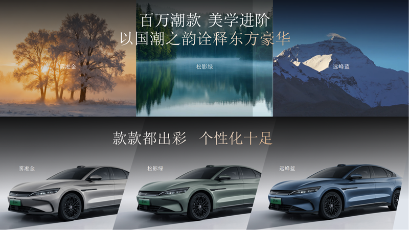 新车在续航和配置进行了调整,其中DM-i车型搭载第五代DM技术,实现245km纯电续航与3.44L超低油耗,汉EV智驾版新增635km以及705km续航车型。新车升级了前包围进气口格栅,格栅密度与现款车型不同,看起来更加精致。同时,加推版新增“雾凇金”“松影绿”、“远峰蓝”三种新车色,赋予车型更多元的时尚色彩魅力。