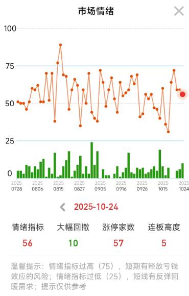 核心结论:当前情绪值56,在“回暖”区间。表明投资者信心短期改善,可能推动资金流向高估值板块。
