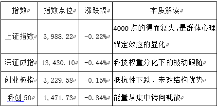 今日冲高回落,4000点得而复失,看似技术压力,实则是群体共识的真实呈现。