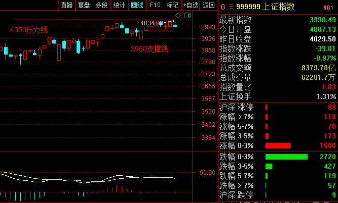 今日A股走出“冲高回落、午后跳水、尾盘企稳”的震荡行情。在连续放量突破4050点未果后,市场受外围大跌与内资大幅流出双重压制,迎来技术性整固。