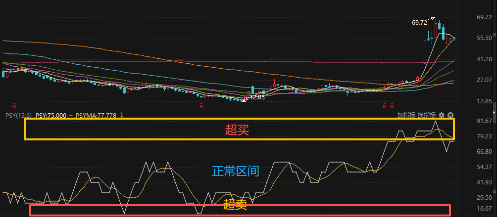 基本原理: PSY通过统计特定周期内价格上涨的天数占比,来反映市场的乐观或悲观程度。