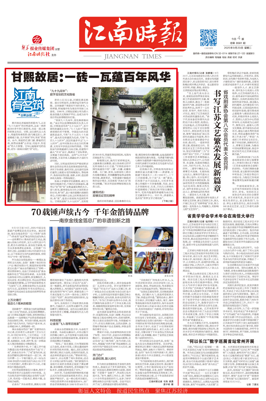 汪晓茜介绍,甘熙故居内原有江南地区最大的藏书楼——津逮楼,它始建于清道光十二年(1832年),上下三开间重檐,仿宁波“天一阁”建造。后其毁于太平天国战火,甘氏多年来悉心珍藏的十万余卷典籍、书画、金石几乎损毁殆尽,后来,甘氏后人将楼内所遗捐赠给了现南京图书馆古籍部。如今,宅第内复建的津逮楼为南京地方文献资料中心。2021年,津逮楼入选首批“世界文学之都地标”。