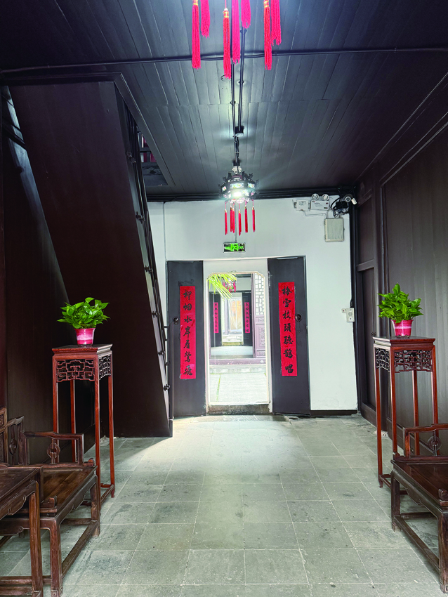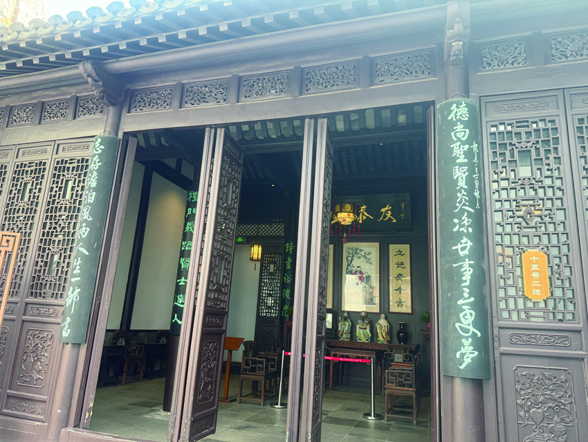 津逮楼作为甘家的藏书楼,其楹联最具代表性。南面楹联写道:“津逮楼中,丝竹管弦,雅韵天生九畹;人文道上,才情胆识,大名高矗两间。”“这副楹联将甘家在文化艺术和人生道路上的追求表达得淋漓尽致。‘丝竹管弦’指代音乐戏曲,‘雅韵天生’彰显艺术天赋,‘才情胆识’则体现了家族的人文情怀。”袁裕陵介绍,北面楹联“万卷精儒名传金石录,千秋大义德润友恭堂”则突出了甘家的学术传承。其中“金石录”即指甘家珍藏的宋版《金石录》,这部珍贵的典籍曾是津逮楼的镇馆之宝。