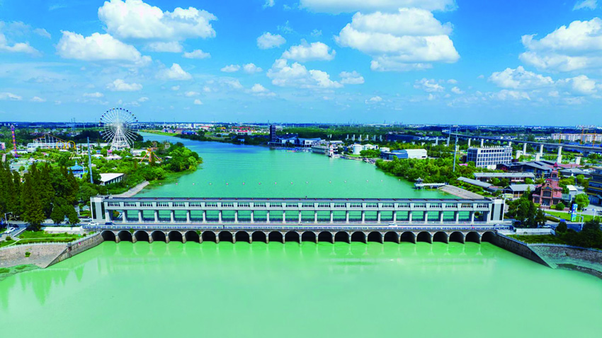 江都水利枢纽位于江苏省扬州市境内京杭大运河、新通扬运河和淮河入江水道交汇处,是南水北调东线工程的源头,被誉为“江淮明珠”。它不仅是我国规模最大的电力排灌工程,而且是南水北调东线工程的核心源头。北望枢纽,一泓清水跨越江淮、滋养齐鲁、润泽燕赵、惠及津门,将“长河泱泱,利泽万方”的壮阔画卷徐徐展开。